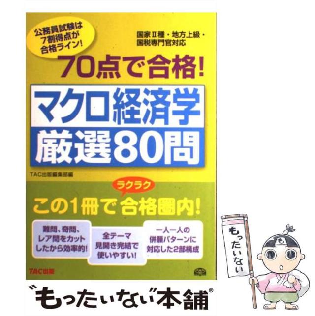 【中古】 70点で合格!マクロ経済学厳選80問 国家2種・地方上級・国税専門官対応 (公務員70点で合格シリーズ) / TAC出版編集部、タック / TAC出版事業部 [単行本]【メール便送料無料】