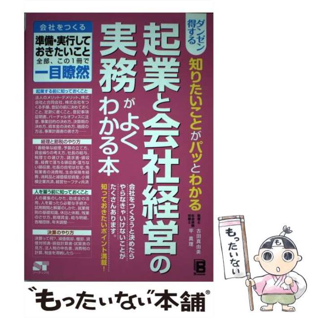 商品名:【中古】 ダンゼン得する知りたいことがパッとわかる起業と会社経営の実務がよくわかる本 / 古田真由美 平真理 / ソーテック社 [単行本]【メール便送料無料】