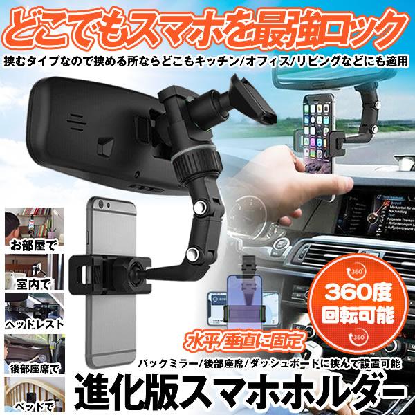 ランキング1位 車 スマホホルダー クリップ 車載スマホホルダー 車載ホルダー どこでも スマホホルダー ルームミラー バックミラー スマホスタンド 携帯ホルダー ナビホルダー 360度回転 クリップ式 強力 室内 部屋 後部座席 TYOKO