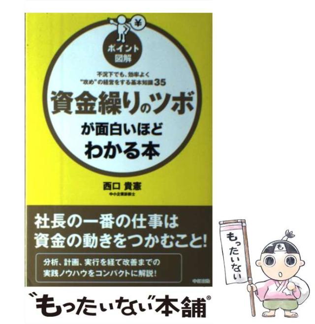 商品名:【中古】 資金繰りのツボが面白いほどわかる本 ポイント図解 不況下でも、効率よく”攻め”の経営をする基本知識35 / 西口貴憲 / 中経出版 [単行本(ソフトカバー)]【メール便送料無料】