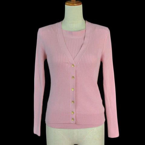 【中古】アクアガール aquagirl アンサンブル リブニット カーディガン レーヨン ピンク レディース