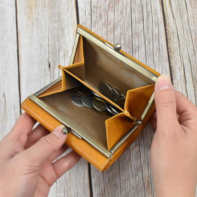 小銭入れは、出し入れがしやすいよう外側にがま口で作られています。小銭入れの中は仕切りが付いているため、整理もしやすい仕様になっています。