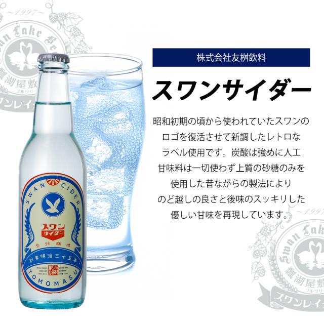 ポーター・・数種類のスペシャルモルトを使用し、ホップの苦味・香りがバランスよく調和しています。 ゴールデンエール・・ライトな口当たりで少し苦味も味わえます。 アンバーエール・・カラメルモルトを多く使用しモルトのふくよかな香りとホップ由来の強い苦味が特徴です。 こしひかり・・地元新潟産こしひかりを使用。モルトにないお米の軽さドライさが特徴です。 岩室こしひかり・・地元新潟産こしひかりを使用。モルトにないお米の軽さドライさが特徴です。 ヴァイツェン・・ヴァイツェン酵母と小麦を使用しフルーティーな香りと味が特徴です。 感謝エール・・ライトな口当たりで少し苦味も味わえます。 スワンレイクソーセージ・・スワンレイクのシェフが考案・監修し、ヤスダヨーグルトの飼料を食べ広大な自然の中で育ったブランド豚を使用しました。舌触り滑らかで食べやすく、スワンレイクビールとの相性抜群です。 スワンサイダー・・原料には上質グラニュー糖を使用し、炭酸を強く含んでいますので、昭和のサイダー全盛期の味をお楽しみいただけます。グラニュー糖を入念に溶かしこみ、昔ながらの製法で製造し飲みやすく後味もさっぱりしています。 |