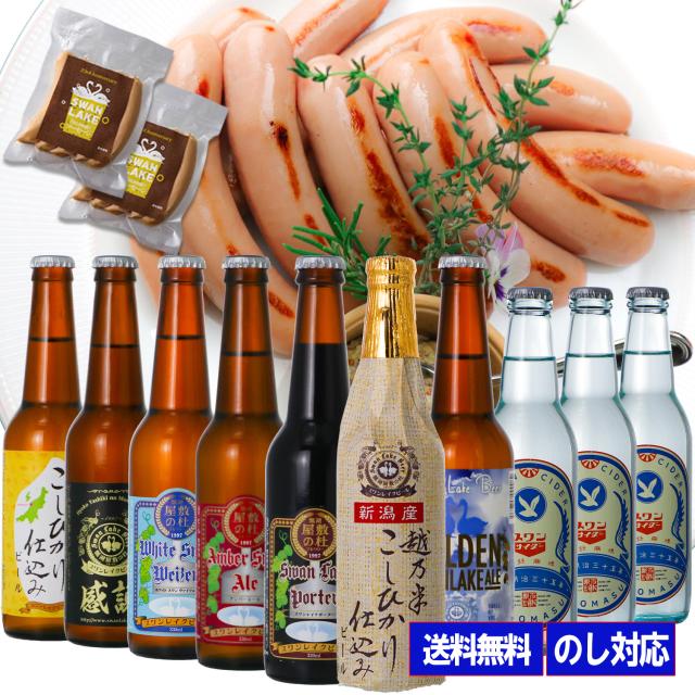 | 内容量 | 330ml×10本 ゴールデンエール×1本 ポーター×1本 こしひかり×1本 岩室こしひかり×1本 アンバーエール×1本 ヴァイツェン×1本 感謝エール×1本 スワンサイダー×3本 スワンレイクソーセージ約175g(約35g×5本) 2袋 |