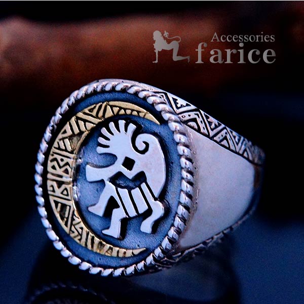 ココペリ 精霊 月 ムーン シルバー925 インディアンジュエリー 印台リング ラウンド メンズ フリーサイズ リング 指輪