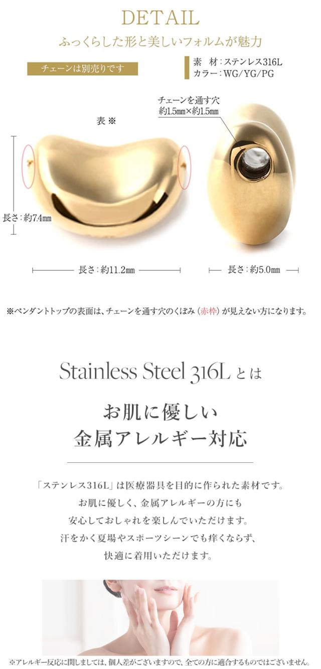ペンダントトップヘッド 金属アレルギー対応 ビーンズ 医療用 ステンレス316L サージカルステンレス ペンダントトップ トップ ペンダント レディース ゴールド ピンク ホワイト ジュエリー アクセサリー 誕生日 クリスマス プレゼント ギフト