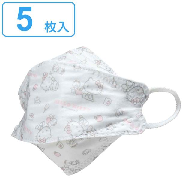 マスク 不織布 高機能立体マスク 大人用 ハローキティ ( 不織布マスク 立体マスク 立体 柄 3面 立体構造 おとな 大人 5枚入り 快適 息がしやすい 呼吸しやすい 顔にフィット 使い捨て かわいい キャラクター )