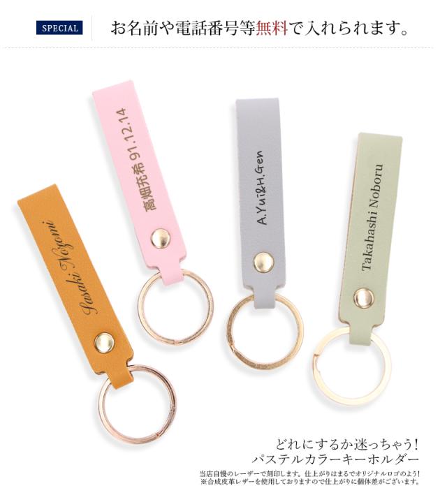 キーホルダー 革 おしゃれ 名入れ プレゼント 【名入れ無料】 【送料無料】 PUレザー 文字刻印 名前入り 文字入れ パステルカラー キーリング 車 鍵 ギフト 誕生日 卒業祝い 実用的 プチギフト