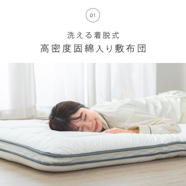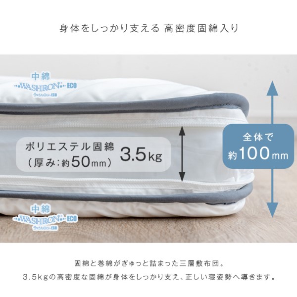 洗える 布団セット ダブル 抗菌 防臭 防カビ 固綿三層敷布団 高さ調節枕 掛け敷布団セット 収納ケース付き 布団 ふとんセット