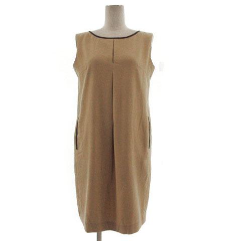 【中古】エムズセレクト m’s select ワンピース ノースリーブ ひざ丈 タック パイピング ブラウン 茶 38 レディース