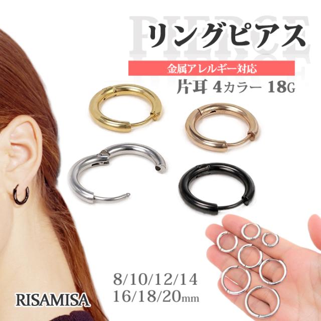 フープピアス ボディピアス 18G 8mm ~ 20mm サージカルステンレス 金属 アレルギー対応 片耳 つけっぱなし 男女兼用 ダンス イベント