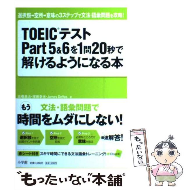 【中古】 TOEICテストPart5&6を1問20秒で解けるようになる本 選択肢→空所→意味の3ステップで文法・語彙問題を攻略! / 高橋基治 塚田幸光 James DeVos / 小学館 [単行本]【メール便送料無料】