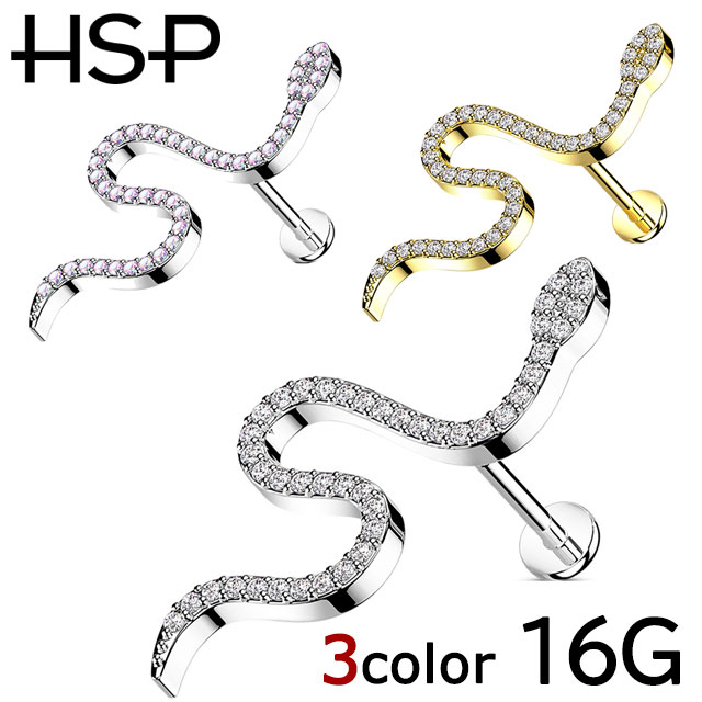 HSP ボディピアス CZ パヴェ ジュエル スネーク インターナル ラブレットスタッド 16G [ ゴージャス ヘビ 蛇 巳 ボディーピアス シルバー イエローゴールド 軟骨ピアス ]