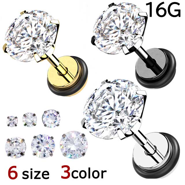 ボディピアス CZ プロング ジュエル フェイクプラグ 軟骨ピアス 耳ピアス ヘリックス ボディーピアス