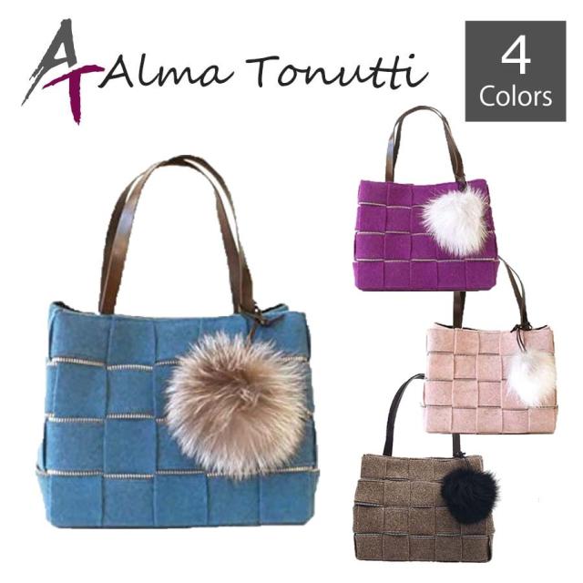 Alma Tonutti アルマトヌッティ フォックスファー付きウールトート スクエア