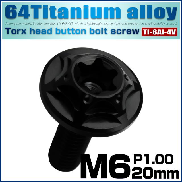 チタンボルト M6×20mm P1.0 ボタンボルト フランジ付き トルクス穴 ブラック JA1042