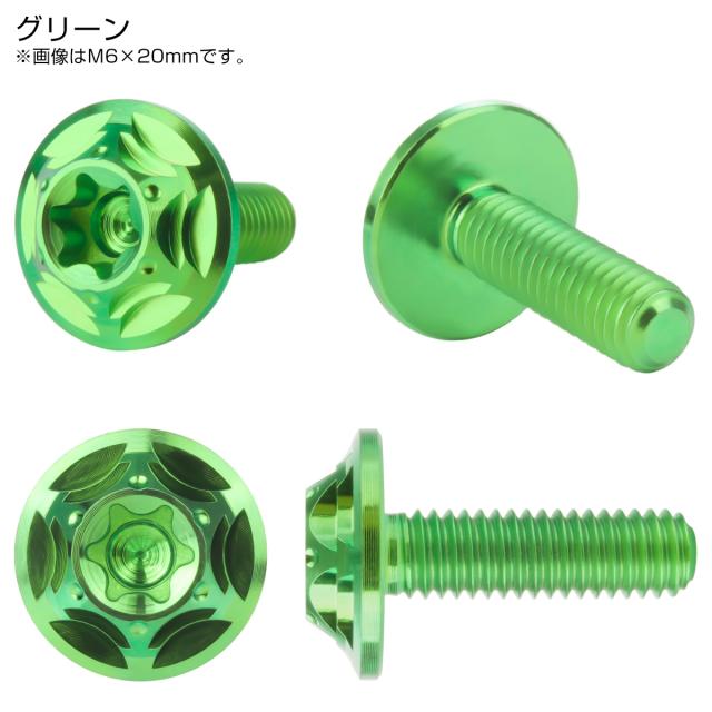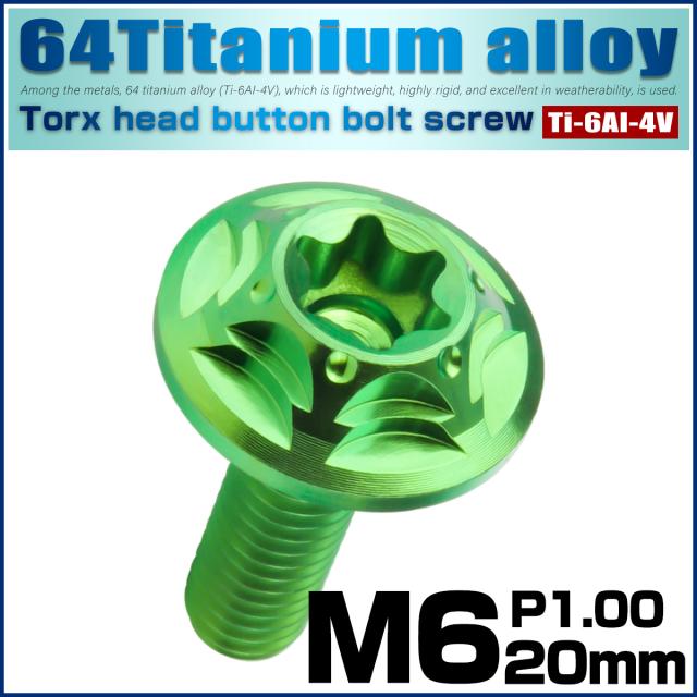 チタンボルト M6×20mm P1.0 ボタンボルト フランジ付き トルクス穴 グリーン JA1038