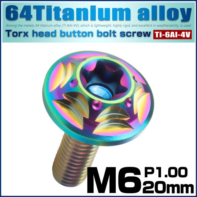 チタンボルト M6×20mm P1.0 ボタンボルト フランジ付き トルクス穴 レインボー JA1040
