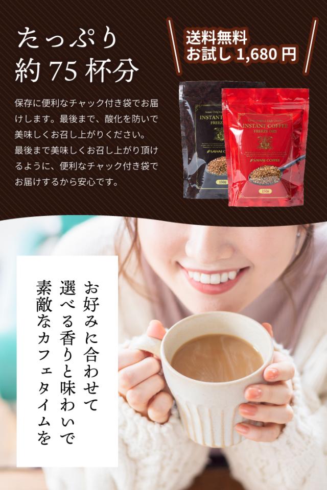 | 商品名 | コーヒー専門店の品質!澤井珈琲のインスタントコーヒー150g 75杯分 赤 黒 |