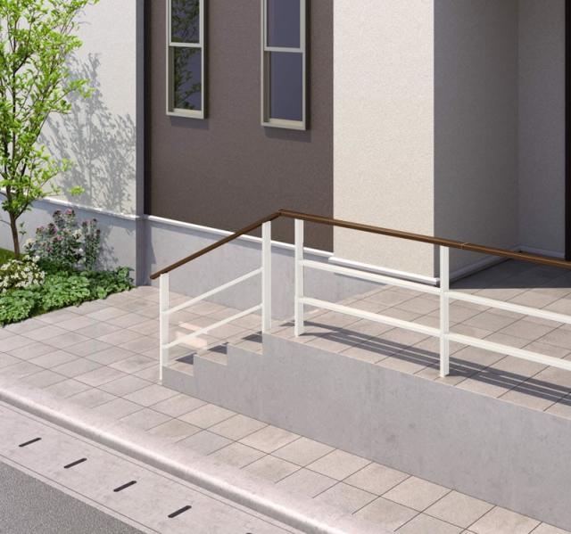 階段手すり 玄関手すり 手すり 手摺 手摺り 屋外 玄関アプローチ ジーエムライン 4スパンセット 木調笠木 埋め込み支柱タイプ