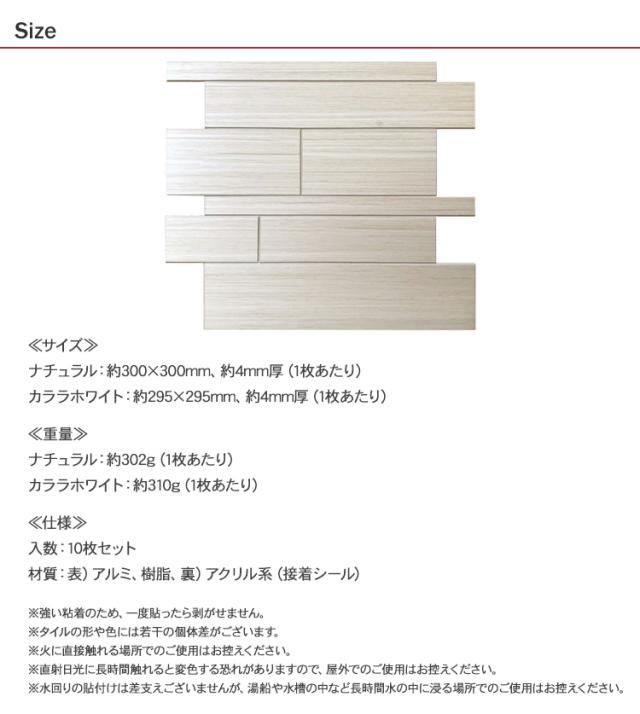 サイズ:ナチュラル:約300×300mm、約4mm厚、カララホワイト:約295×295mm、約4mm厚(1枚あたり)