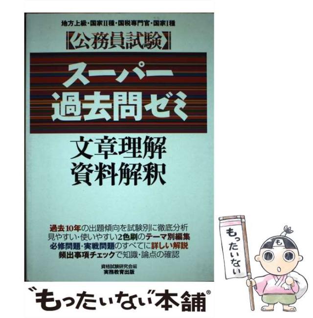 商品名:【中古】 スーパー過去問ゼミ文章理解・資料解釈 地方上級・国家2種・国税専門官・国家1種 (公務員試験) / 資格試験研究会、実務教育出版 / 実務教育出版 [単行本]【メール便送料無料】