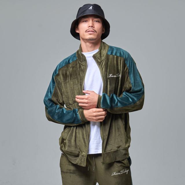 ジャージ メンズ RAZZ ラズ トップス 羽織り ジップアップ ハイネック ベロア 大きいサイズ ビッグシルエット オーバーサイズ セットアップ可 ストリート 秋 冬 即日発送 [RAZZ21-9]