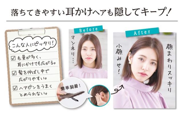 ちょこっとするだけで“パッ”と垢抜け! 落ちてきやすい耳かけヘアも隠してキープ! 簡単装着で顔まわりすっきり小顔みせ!