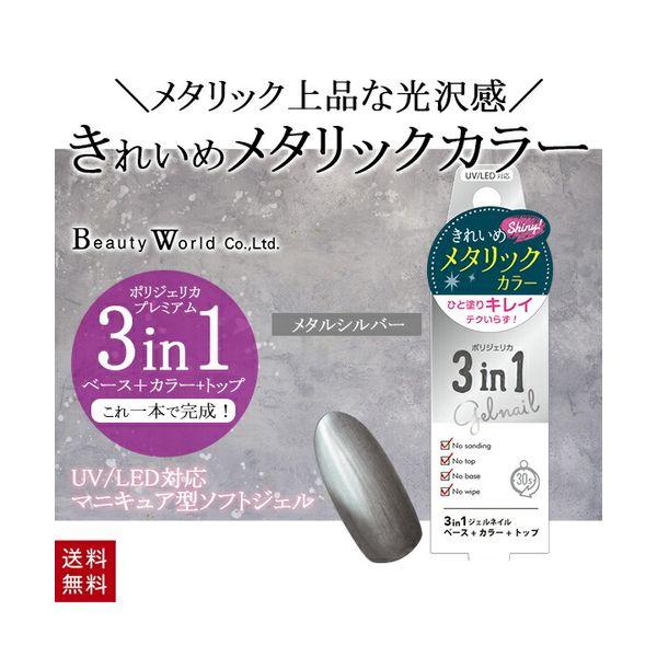 BW ポリジェリカ プレミアム 3in1 メタル シルバー WGC1053 クリアカラー ジェルネイル ベース カラー トップ UV LED 対応 日本製