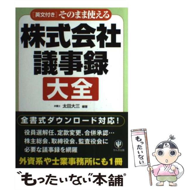 商品名:【中古】 そのまま使える株式会社議事録大全 / 太田 大三 / かんき出版 [単行本(ソフトカバー)]【メール便送料無料】