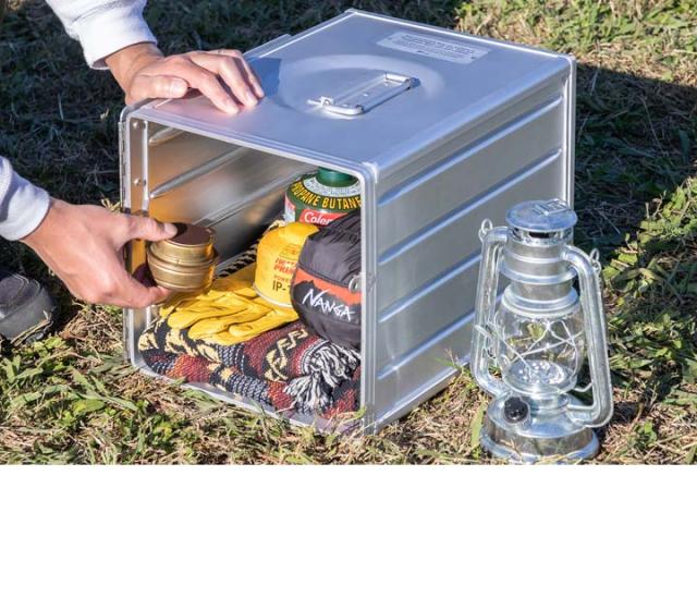 FIELDOOR アルミギャレーボックス 30cm×41cm×28cm 28L 収納ボックス 収納ケース アルミ おしゃれ ギア収納 道具入れ ストッカー 収納BOX 取っ手付 軽い 箱 屋外 アウトドア ミリタリー 航空機 テーブル チェスト スタッキング キャンプ 送料無料