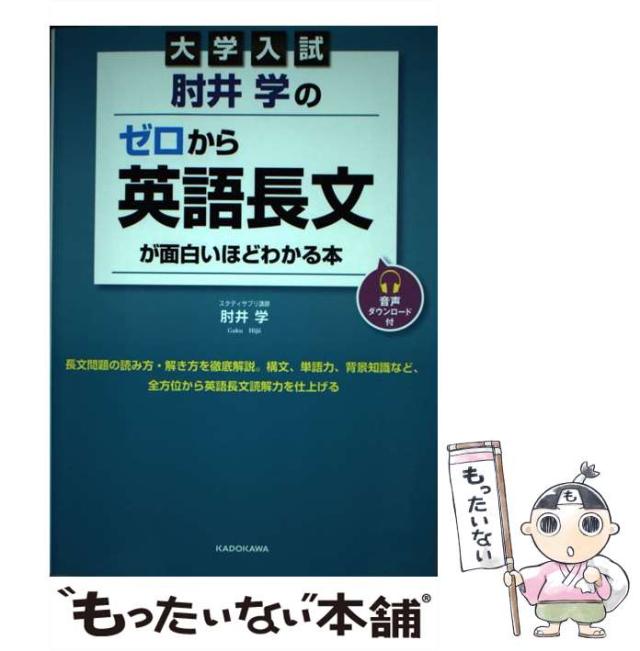 商品名:【中古】 大学入試 肘井学の ゼロから英語長文が面白いほどわかる本 音声ダウンロード付 / 肘井 学 / KADOKAWA [単行本]【メール便送料無料】