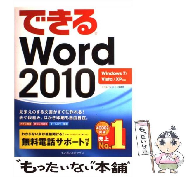 商品名:【中古】 できるWord 2010 Windows 7/Vista/XP対応 / 田中亘 できるシリーズ編集部 / インプレスジャパン [単行本(ソフトカバー)]【メール便送料無料】