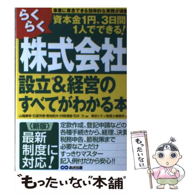 【中古】 らくらく株式会社設立&経営のすべてがわかる本 事業に専念できる効率的な実務が満載 資本金1円、3日間1人でできる! 新版 / 山端 / [単行本(ソフトカバー)]【メール便送料無料】