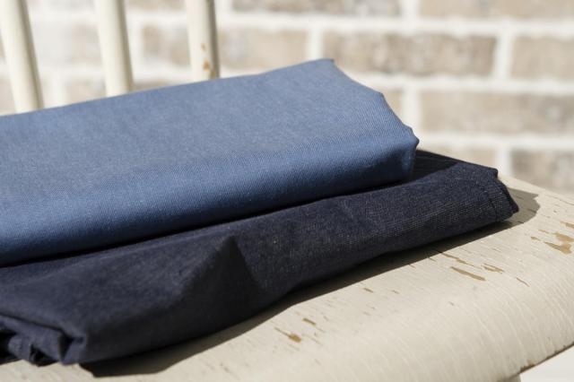 ジーンズに使われるハードなデニムよりも細め(30番)の糸を使い、ソフトな肌ざわりに仕上げたベッドリネンに適したデニムです。