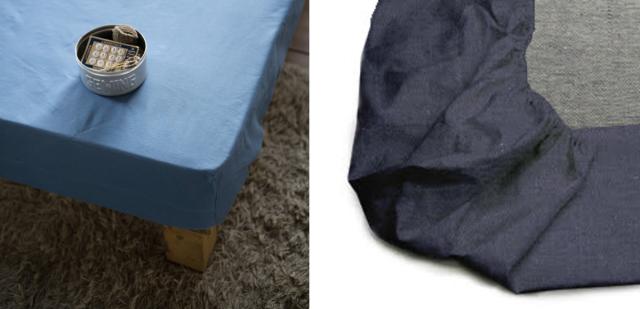 ジーンズに使われるハードなデニムよりも細め(30番)の糸を使い、ソフトな肌ざわりに仕上げたベッドリネンに適したデニムです。