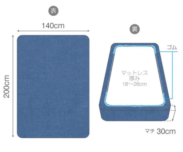 | マットレスを包むマチ30cm マットレスの四隅をすっぽり包み込むようにマチを30cm取っています。 ※厚さ18〜26cmのマットレスに対応しています | 上下ゴム入り マットレスの角に引っ掛けるだけでシーツが固定され、寝返りを打ってもズレにくくなっています。 |