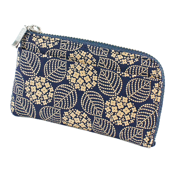 印伝 甲州印伝 印傳屋 上原勇七 財布 小銭入れ 1005 あじさい 紫陽花 紺地×白漆 鹿革 本革 レザー 花柄 ブランド 冬ギフト バレンタイン 贈り物 YM02