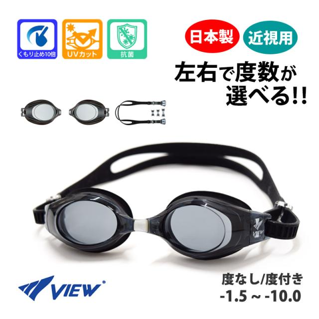 度付き ゴーグル 水泳 キッズ 子供〜大人用 view-goggles タバタ Tabata VIEW ビュー スイムゴーグル UVカット くもり止め 近視用 左右で度数が選べる 日本製 フィットネス スイミング レンズ 男女兼用 VC580SA VPS570 メール便送料無料