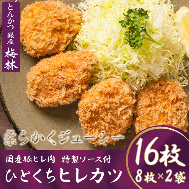 送料込み 銀座梅林 ひとくちヒレカツ280g(8枚)×2袋 計16枚 ソース4袋付き 冷凍 銀座 梅林 ひとくち ヒレカツ ひれかつ カツ 一口