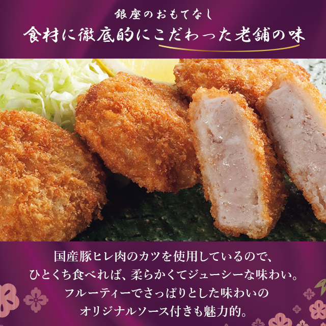 - 冷凍商品なのに、ヒレカツの味がご飯にあって、おいしかったです。銀座のお店のが自宅で食べれるのも嬉しい。