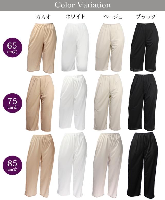 日本製 ペチコート パンツ ペチパンツ キュロット 65cm丈 75cm 85cm丈 送料無料 ロング ぺチコートパンツ 下着 レディース 浴衣 肌着 吸水速乾 静電気防止 股ずれ 防止 インナー シンプル 透け防止 黒 大きいサイズ フレア 透けない 下着透け対策 s m l ll 3L 4L 6645