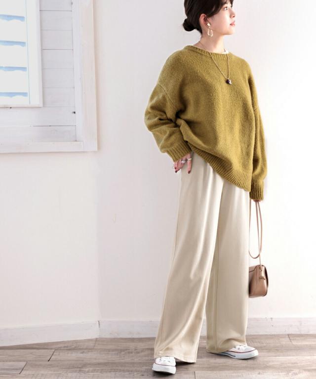 裏ピーチ起毛で暖かく、ゆったり楽ちんながらも