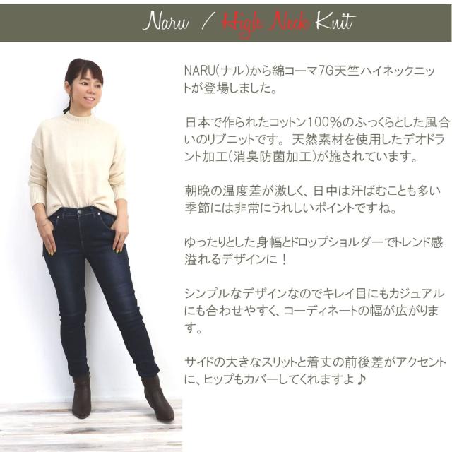 ナル NARU 綿コーマ7G天竺ハイネックニット 638611 トップス レディース セーター カットソー ハイネック ドロップショルダー 日本製 綿 南出メリヤス 秋 冬 シンプル 無地 消臭 防菌 おしゃれ アーベン 普段使い 実用的 2026年