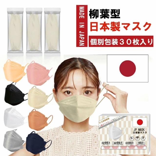 不織布 日本製マスク 柳葉型国産マスク 個別包装 ダイヤモンド構造 JP95 血色マスク 韓国マスク型 デザインマスク 高性能カラーマスク 30枚入り 送料無料