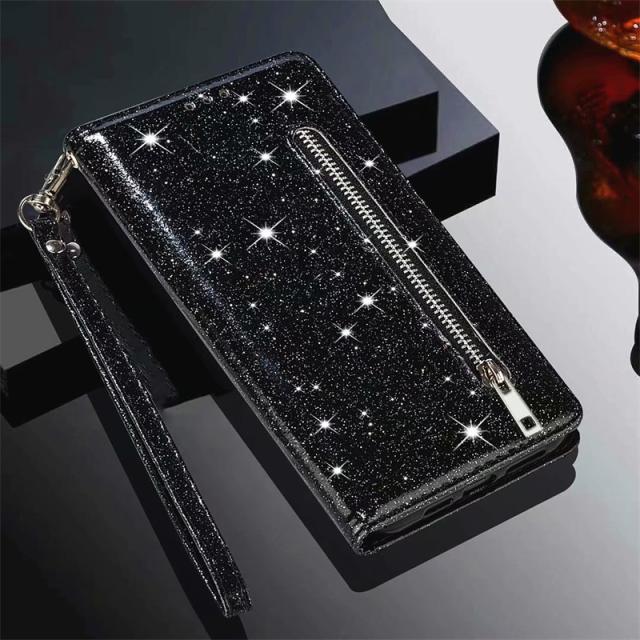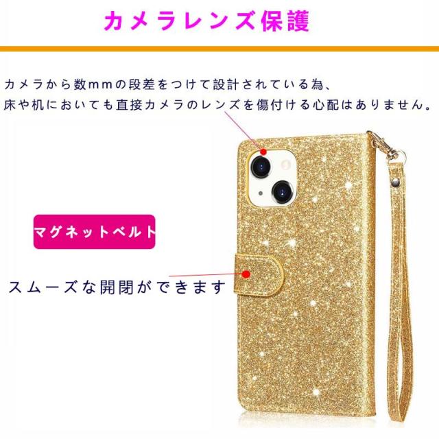 1.輝くグリッターを全面に採用された手帳型ケースです。