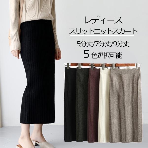 スカート タイトスカート ニットスカート ボトムス ミディアム 5分丈 7分丈 9分丈 ロング リブニット スカート ミモレ丈 膝丈 タイト 秋 冬 リブスカート ロングスカート ひざ丈 すっきり ウエストゴム ウェストゴム シンプル オフィス カジュアル 無地