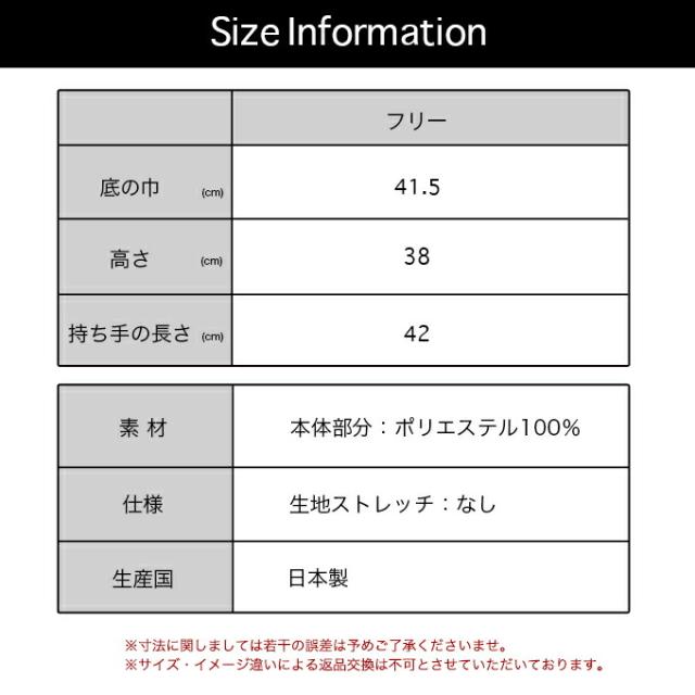 横幅約41.5cm×縦幅約38cm、持ち手約42cm