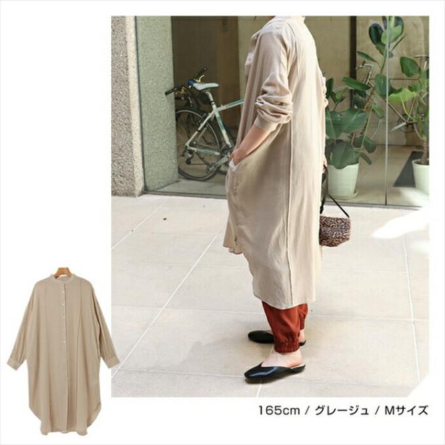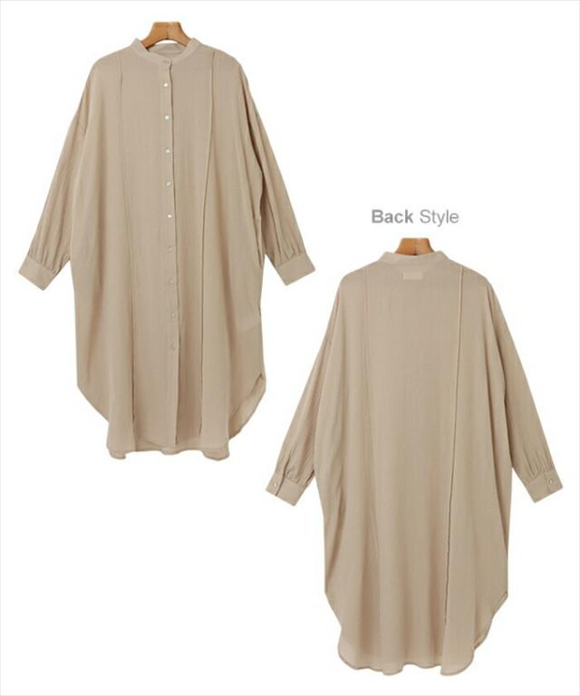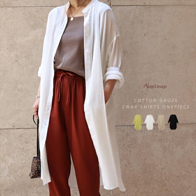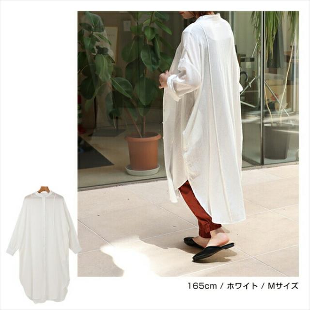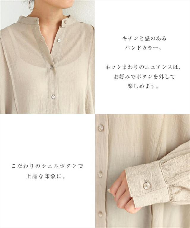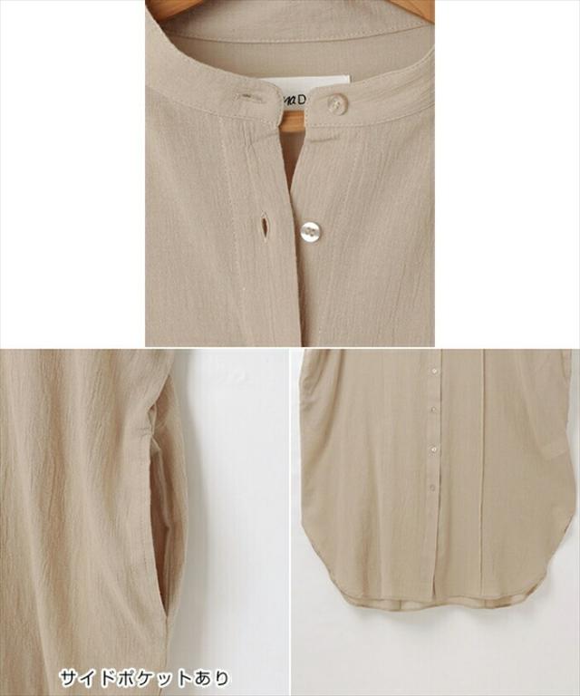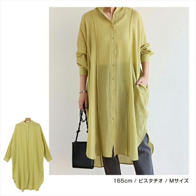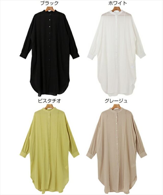 コットンガーゼ 長袖 シアー シャツ ワンピース レディース シボ感 2way バンドカラー シャツワンピ シェルボタン サイドポケット 大人 女性 きれいめ カジュアル ナチュラル オフィス カットソー 女性 トップス シャツ 春 夏 秋 シンプルトップス 送料無 6001675