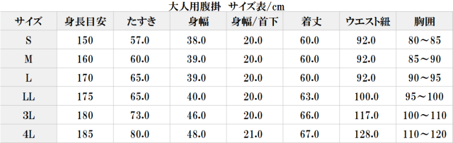 ■腹掛紺サイズ一覧■